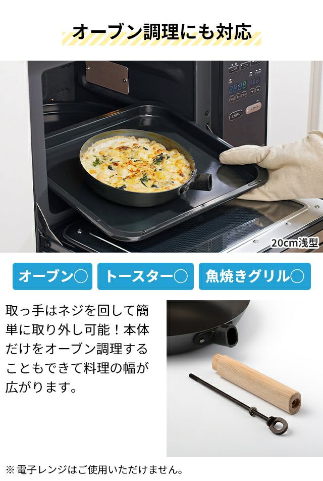 他の画像を見る 高い熱伝導性と蓄熱性で、食材の旨みを引き出す鉄フライパン 20cm。焦げ付きにくく錆びにくい加工付きで初心者の方にも◎。取っ手が取れるのでオーブンでも使用可能です。 ライクイット オーブンでも使える鉄フライパン 20cm 深型 鉄製フライパン 日本製 ガス火 取っ手が取れる 長持ち 20センチ ih対応 おしゃれ キャンプ 木 取っ手 錆びにくい 国産 一生もの 一人暮らし 使いやすい 揚げ物 オーブン 藤田金属 like-it 当店特別価格 ¥ 6,600 税込 詳細を見る お気に入りに登録する