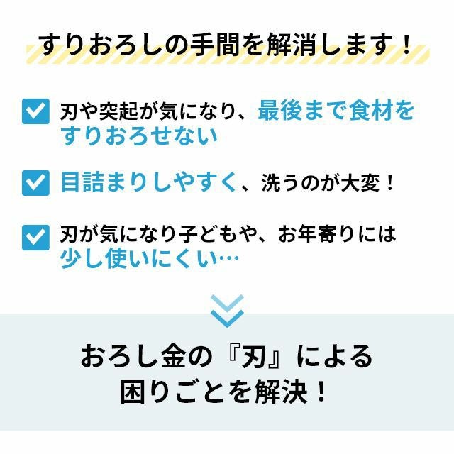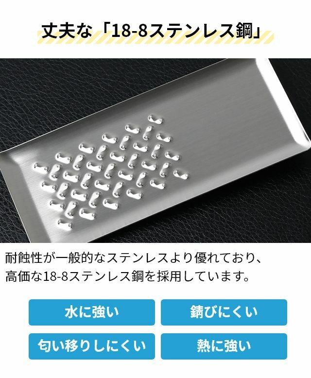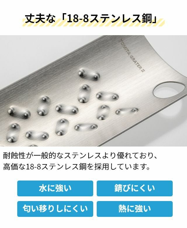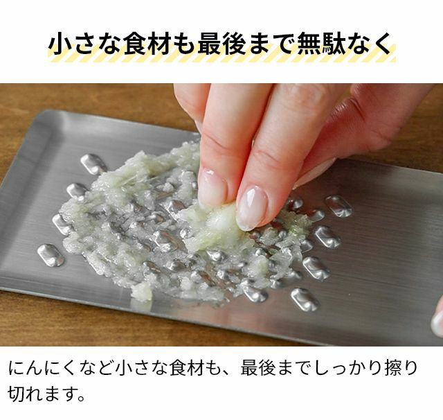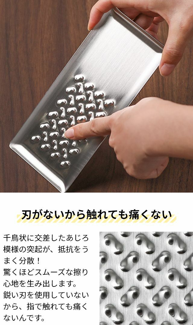 他の画像を見る 燕三条発!刃を使わないおろし金はすりおろしのときに手を切らず安心、安全。にんにくなど小さな食材も最後まで擦り切れる!洗う時のスポンジも引っかからずお手入れ簡単♪ トミタ おろし器 トミタ式おろし金2 TMO-002 チーズグレーター おろしがね グレーター 生わさび しょうが ステンレス 長芋 日本製 にんにく チーズ削り 山芋 とろろ 大根おろし 小 洗いやすい 安全 燕三条 グッドデザイン ◆メール便配送◆ 当店特別価格 ¥ 3,960 税込 詳細を見る お気に入りに登録する