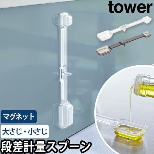 山崎実業(tower)からキッチンツールシリーズが新登場。大さじ・小さじが一本で量れる段差メモリ付きの計量スプーン!スプーンには磁石が内蔵されており壁面収納可能です。 山崎実業 タワー 計量スプーン マグネット段々計量スプーン 6923 6924 調理スプーン スプーン 調理 キッチン道具 直置き 大さじ 小さじ 一体型 一本 1/2 壁面 浮く マグネット 磁石 北欧 シンプル おしゃれ tower マグネット収納 壁面収納 yamazaki タワーシリーズ