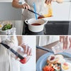 しなやかに曲がるシリコン製なので、ボウル・鍋・フライパン・お皿などを傷つけないから安心。ヘラ部分と柄が一体型になっているので洗いやすいのも魅力!