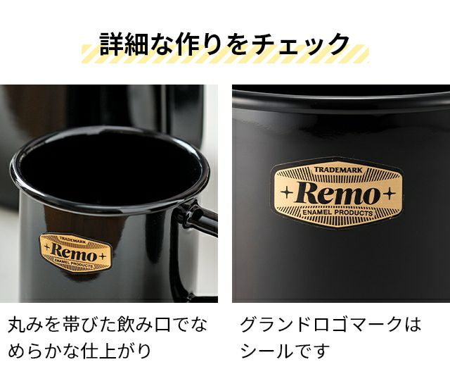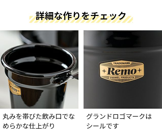 他の画像を見る 1947年創業の琺瑯専門メーカー富士ホーロー株式会社が作った、高品質な琺瑯製マグ。おしゃれさとアウトドアシーンでの使用を想定した機能性を両立しています。 レモ Remo 8cmマグカップ コーヒー カップ スープ ティー 珈琲 直火 使いやすい 汚れにくい 丸洗い 琺瑯 ほうろう 黒 アウトドア キャンプ CAMP キャンプ飯 キャンプグッズ バーベキュー BBQ 富士ホーロー FUJIHORO 当店特別価格 ¥ 2,530 税込 在庫切れ 詳細を見る お気に入りに登録する