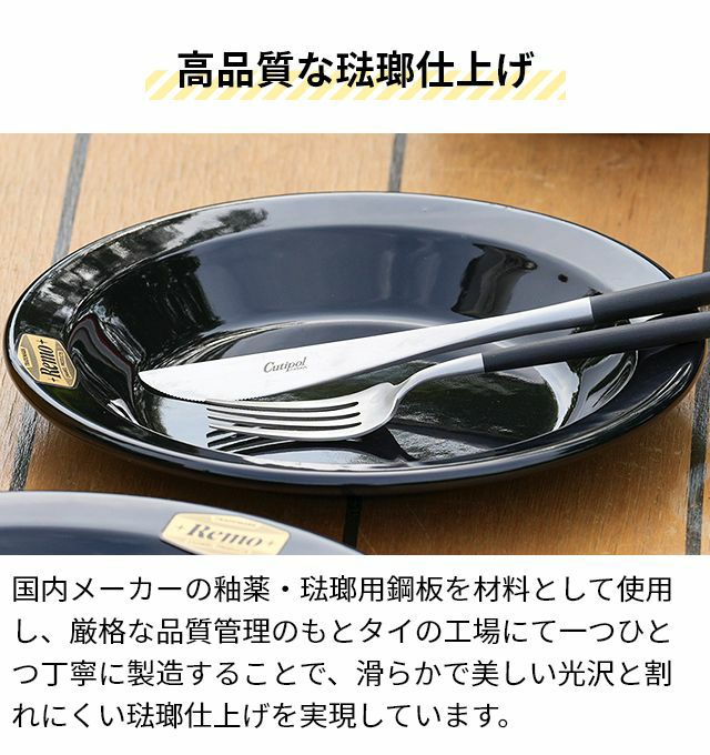 他の画像を見る 1947年創業の琺瑯専門メーカー富士ホーロー株式会社が作った、高品質な琺瑯製ワンプレート。おしゃれさとアウトドアシーンでの使用を想定した機能性を両立しています。 レモ Remo 23cm ワンプレート 皿 食器 ラウンドプレート 仕切り 直火 使いやすい 汚れにくい 丸洗い 琺瑯 ほうろう 黒 アウトドア キャンプ CAMP キャンプ飯 キャンプグッズ バーベキュー BBQ 富士ホーロー FUJIHORO 当店特別価格 ¥ 2,310 税込 在庫切れ 詳細を見る お気に入りに登録する