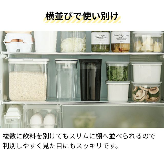 他の画像を見る 冷蔵庫ドアポケットにすっぽり入るスリムな1.2Lタイプの冷水筒。広口で洗いやすく、食洗機対応。透明度が高く美しい佇まいで、飲み物を注ぐのが楽しみになります♪ 山崎実業 ハンドル付き冷水筒 タワー 1.2L 1646 1647 ピッチャー 水差し ボトル 麦茶ポット お茶ポット スリムジャグ 麦茶入れ 1.2L おしゃれ 冷蔵庫 パッキンなし スリム 食洗機対応 洗いやすい tower 冷蔵庫収納 yamazaki タワーシリーズ 当店特別価格 ¥ 2,200 税込 詳細を見る お気に入りに登録する