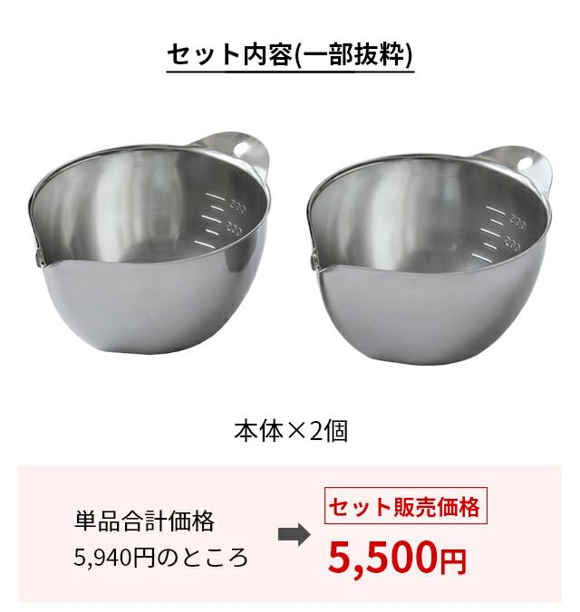 他の画像を見る 独自形状の注ぎ口で、キレよく注げるボウル。卵焼きを作る時、液だれして調理台がべたべたに…そんなお悩みを解決します。300mlまでの便利な目盛り付きで食洗機対応です。 ビーワースセレクション 【選べる豪華特典】 すっきり暮らす キレッキレボウル 11cm 2個組 ステンレスボウル 日本製 キッチン 燕三条 小 液だれ しにくい 卵 混ぜる 注ぎ口 取っ手付き ドレッシング 食洗機対応 300ml 引っ掛ける 深め bwsSELECTION 当店特別価格 ¥ 5,500 税込 詳細を見る お気に入りに登録する