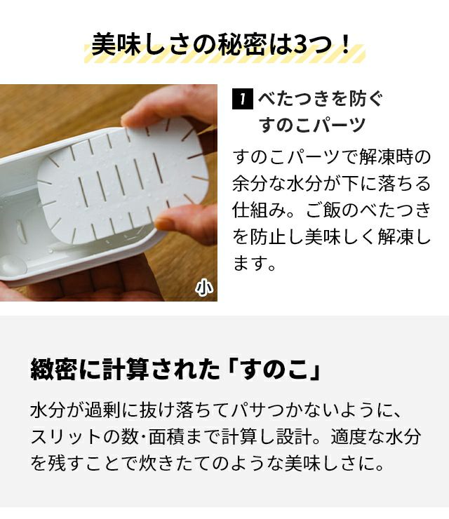 他の画像を見る ザルによる二重構造で、冷凍ご飯を美味しく保存、レンジでふっくら解凍できる冷凍ごはん容器。お茶碗1膳分160~200gが保存できるやや大きめサイズ。食洗機対応です。 ライクイット 蒸気であたためる冷凍ごはん容器 単品 ご飯容器 保存容器 冷凍保存容器 蒸し器 1膳 日本製 野菜 おしゃれ 200g プラスチック 洗いやすい 重ねて収納 冷蔵 米 大きめ 四角 丸型ザル 食洗機対応 レンジ 二重構造 蒸し物 like-it 当店特別価格 ¥ 660 税込 詳細を見る お気に入りに登録する