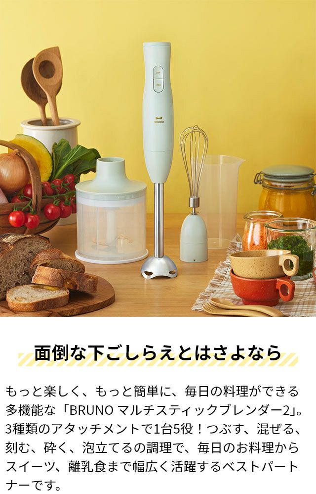 他の画像を見る 3種類のアタッチメントで1台5役!つぶす、混ぜる、刻む、砕く、泡立てるの調理で、毎日のお料理からスイーツ、離乳食まで幅広く活躍するベストパートナーです。 ブルーノ 【選べる豪華特典】 マルチスティックブレンダー 2 BOE142 ハンドブレンダー ハンディブレンダー ハンドミキサー フードプロセッサー ホイッパー 泡立て器 食洗機対応 氷も砕ける 離乳食 介護食 チョッパー付き 電動 おしゃれ BRUNO 当店特別価格 ¥ 9,680 税込 在庫切れ 詳細を見る お気に入りに登録する
