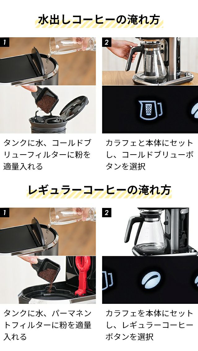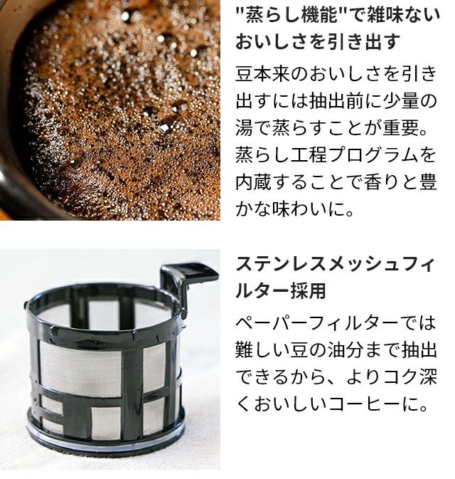 他の画像を見る カフェばこ PROに保温力の高いステンレスサーバーモデルが登場!急冷式アイスコーヒーも手軽にでき、楽しみ方がさらに広がります。 シロカ 【選べる豪華特典】 コーン式全自動コーヒーメーカー カフェばこ PRO ステンレスサーバーモデル SC-C271 ミル機能付き アイスコーヒー対応 大容量 ドリップ 一杯から ステンレスサーバーで保温 豆から 粉対応 家庭用 はずせる水タンク siroca 当店特別価格 ¥ 32,780 税込 詳細を見る お気に入りに登録する