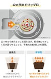 12ヶ所から雨のようにお湯を注ぎ、粉全体にやさしく行き渡らせることで、手淹れの美味しさを再現。