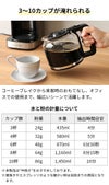 コンパクトなのに、3杯から4杯、5杯、6杯、7杯、8杯、9杯、10杯まで対応!来客時やオフィスでの使用にもちょうどいい大型サイズのコーヒーマシンです。