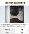 極細から粗挽きまでの豆挽き無段階調節に合わせ、豆25gに対して満充電で最大で13回も使える長持ち設計です。