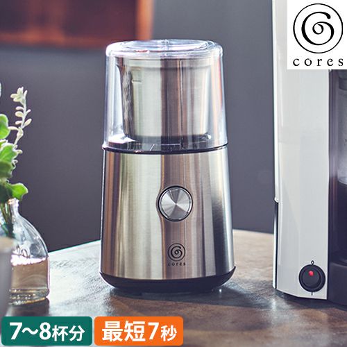 「cores ブレードコーヒーグラインダー」は、スイッチ1つの簡単操作でコーヒー初心者でも使いやすい電動ミル。コンパクトなのにハイパワーで数杯分の中挽きを10秒足らずで挽くことができます。中身が見えるクリアカバーで挽き加減調整も簡単。本体から取り外せるボウルとボウルに直接付ける蓋で粉の飛び散りを防ぎます。必要な機能だけを搭載したシンプルさが魅力のミルです。