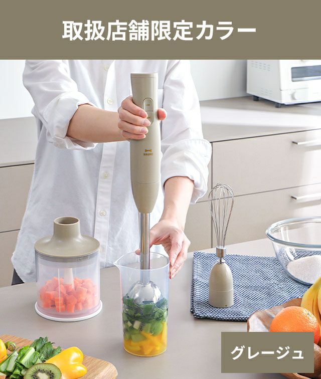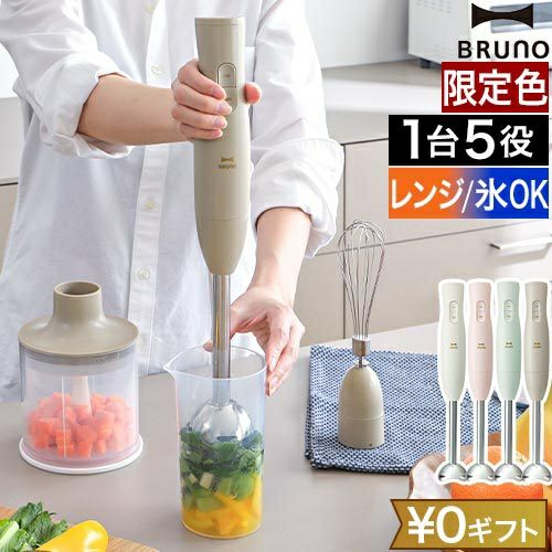 3種類のアタッチメントで1台5役!つぶす、混ぜる、刻む、砕く、泡立てるの調理で、毎日のお料理からスイーツ、離乳食まで幅広く活躍するベストパートナーです。 ブルーノ 【選べる豪華特典】 マルチスティックブレンダー 2 BOE140 ハンドブレンダー ハンディブレンダー ハンドミキサー フードプロセッサー ホイッパー 泡立て器 食洗機対応 氷も砕ける 離乳食 介護食 チョッパー付き 電動 おしゃれ BRUNO