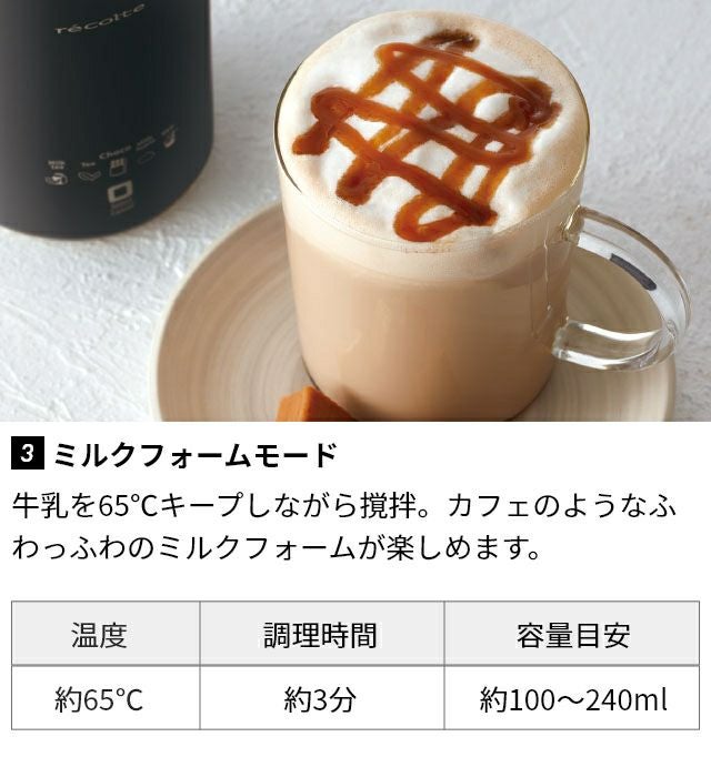 株式会社明治とレコルトが共同開発!板チョコで本格的なチョコレートドリンクが簡単に作れちゃう1台。好みのチョコで作る、濃厚&芳醇な味わいをお楽しみください。 レコルト 【選べる豪華特典】 チョコレートドリンクメーカー RMT-2 ミルクフォーマー シェイカー 電動 明治コラボ プロテイン お手入れ簡単 レシピ きめ細かい泡 ラテアート 温め機能 全自動 ホット ミルクフローサー recolte Chocolate Drink Maker