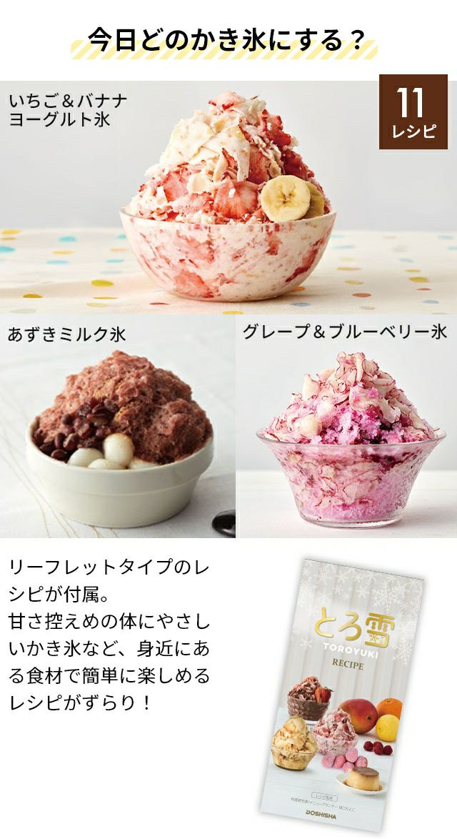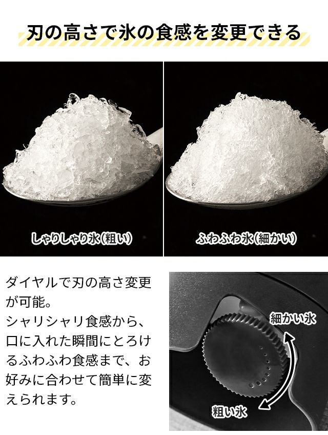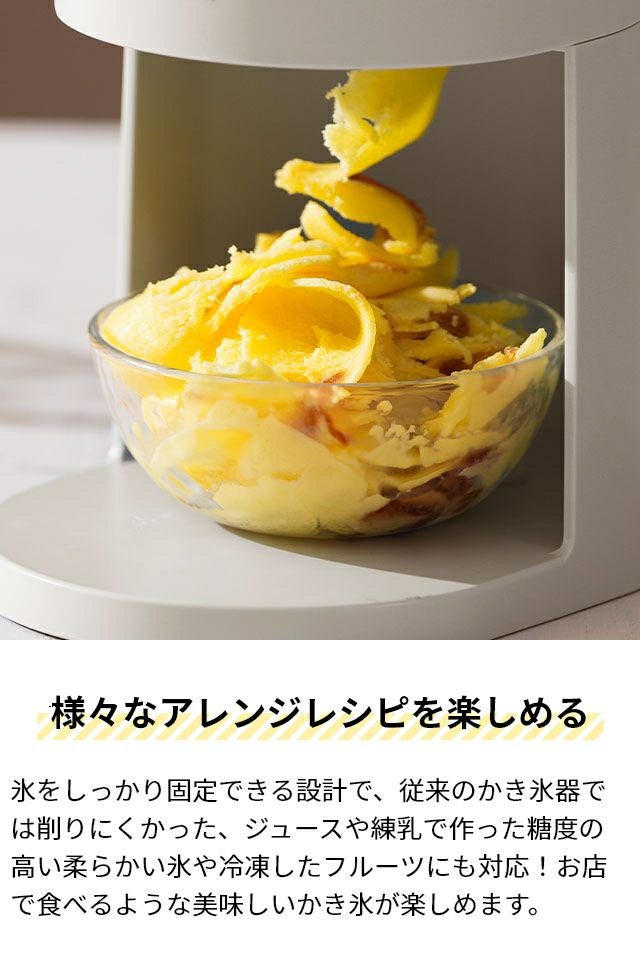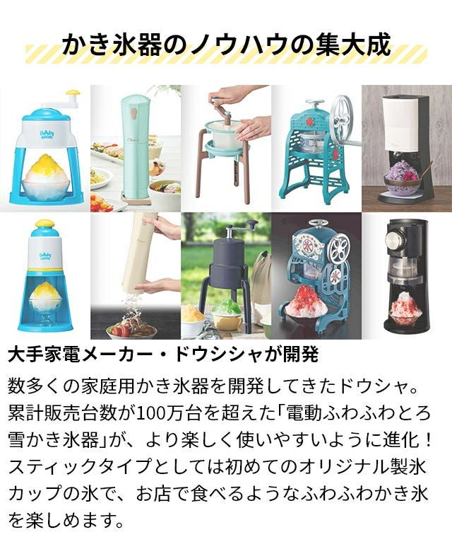 従来のかき氷器では削りにくかった、ジュースや練乳で作った糖度の高い柔らかい氷や冷凍したフルーツにも対応!お店で食べるような美味しいかき氷が楽しめます。 かき氷器 電動 ドウシシャ 電動ふわふわとろ雪スティックかき氷器 DHCI-B4 DHCI-B5 かき氷機 電動 ふわふわ とろ雪 電動バラ氷 otona バラ氷対応 おすすめ おしゃれ 製氷カップ付き 刃 調整 かき氷 自宅 手作り 台湾 スイーツ プリン 冷凍フルーツ