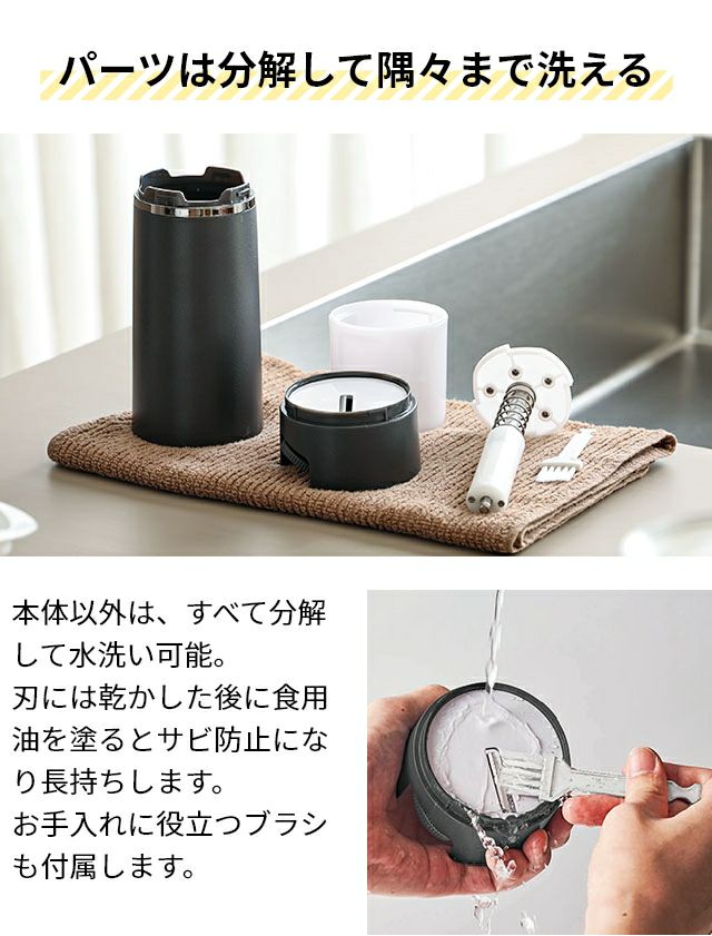 スイッチ1つの簡単操作でコーヒー初心者でも使いやすい!コンパクトなのにハイパワーで数杯分の中挽きも10秒足らずで完成。本体分離型のボウルと蓋で粉の飛び散りを防止。 コレス コーヒーミル ブレードコーヒーグラインダー C340 コーヒーグラインダー 電動コーヒーミル 電動ミル 珈琲ミル 電動 ブラシ コーヒー おしゃれ 小型 コンパクト 初心者 クラシック 掃除しやすい 中挽き 手入れしやすい 手軽 飛び散らない cores