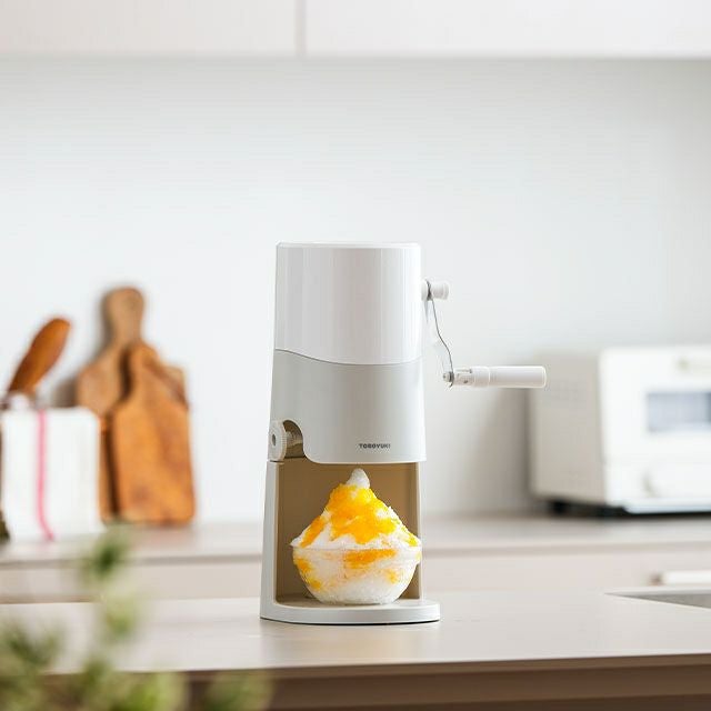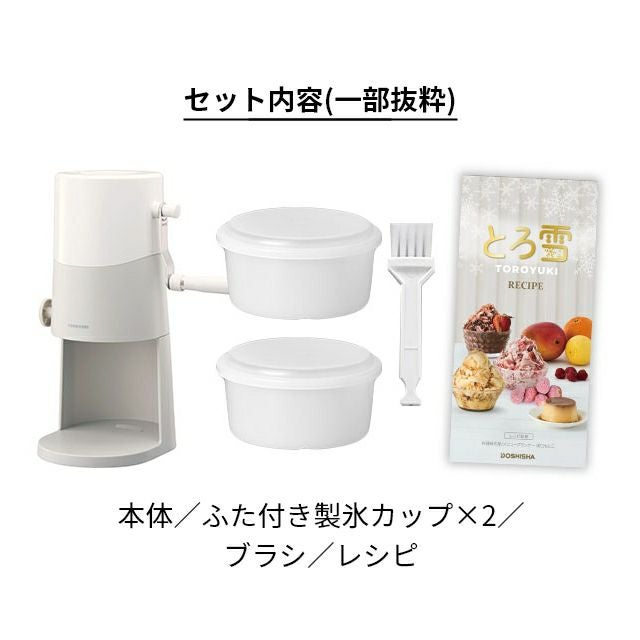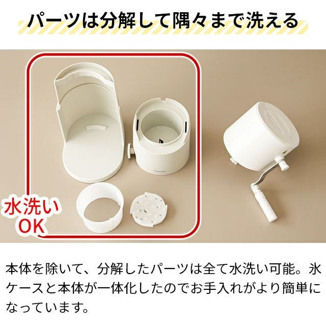 コンパクトに収納できる手動ふわふわかき氷器。台湾風、冷凍プリンと様々なバリエーションのかき氷が味わえる♪ ドウシシャ 手動ふわふわとろ雪かき氷器 IS-TY-B5GY かき氷機 製氷カップ付き バラ氷 レシピ付き ふわふわ とろゆき おすすめ 人気 家庭用 おしゃれ かわいい 小型 コンパクトに収納 台湾かき氷 本格的 丸洗い