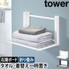 「tower 石こうボード壁対応 折り畳み棚」は、石膏ボードピンで壁面に設置できる折りたたみ式の棚。お風呂上がりにすぐ使いたいバスタオルや着替えの一時置き場が作れます。使わない時は畳んで、限られた空間でも省スペース。石膏ボードピンで壁面に設置できるので、浴室扉の近く、使いやすい高さに設置できます。タオルハンガーとしても使える、一台二役の便利なラックです。