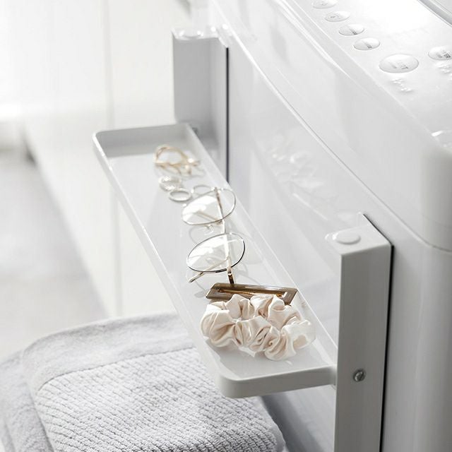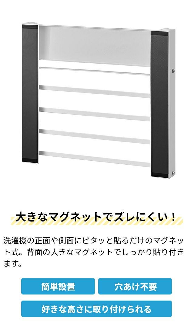 他の画像を見る タオルや着替えの一時置きにぴったりの折り畳み棚。マグネットで洗濯機の正面や側面に簡単に設置できます。上段のトレーにはメガネやアクセサリー等の小物も収納可能! 山崎実業 ランドリーラック 洗濯機横マグネット折り畳み棚 タワー 2段 1717 1718 ラック タオルラック タオル置き 折りたたみ棚 タオルハンガー スリム tower マグネット収納 浮かせる収納 隙間収納 yamazaki タワーシリーズ 当店特別価格 ¥ 5,500 税込 在庫切れ 詳細を見る お気に入りに登録する
