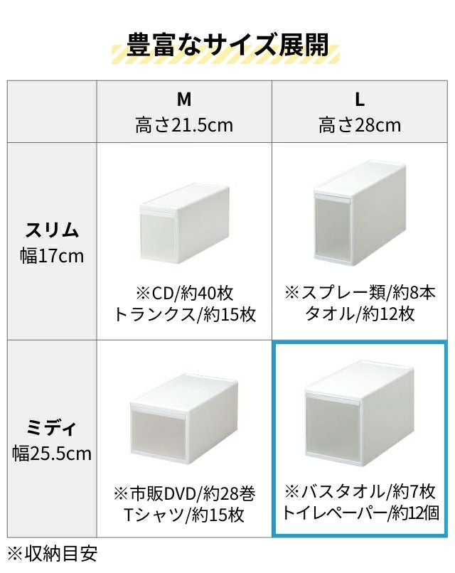 他の画像を見る サイズの異なる引き出し同士を自由に積み重ねたり並べたりできる、使いやすさ抜群の収納ケース。クローゼットや押入れの空いたスペースも無駄なく有効活用できます。 ライクイット クローゼット収納 組み合わせて使える収納ケース ミディM 単品 MOS-02 収納ボックス 衣装ケース ストッカー 小物入れ 押入れ収納 収納チェスト スタックボックス 引き出し 日本製 おしゃれ プラスチック 衣服 衣類 like-it 当店特別価格 ¥ 2,970 税込 詳細を見る お気に入りに登録する