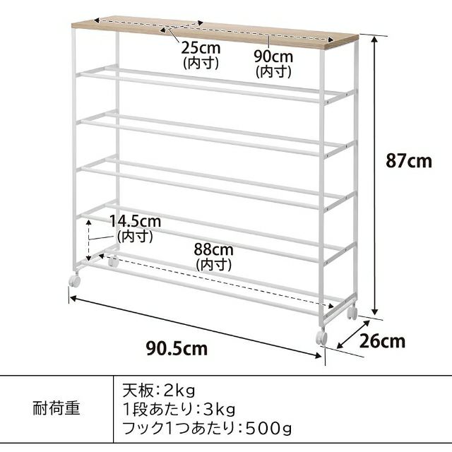 他の画像を見る 幅90cm5段のシューズラックで最大25足収納可能。キャスター付きで掃除も簡単。天板は玄関台として使えて小物置きに◎。スチール×木のデザインが玄関に馴染みます。 山崎実業 天板付きシューズラック タワー 5段 キャスター付 W90 4903208014656 4903208014663 シューズホルダー 下駄箱 靴棚 靴箱 シューズボックス おしゃれ 木製 tower 玄関収納 靴収納 シューズ収納 yamazaki タワーシリーズ 当店特別価格 ¥ 15,950 税込 詳細を見る お気に入りに登録する