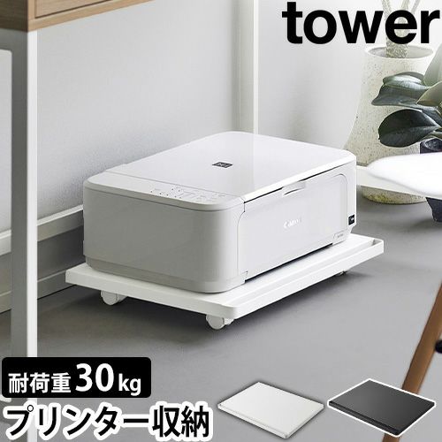 置き場所に困るプリンターをデスク下にすっきり収納できる、「tower プリンターラック キャスター付き」。キャスター付きで、使い時だけ机の下から引き出せて、移動もラクラク!省スペースに収納できるので、デスク周りを広々使えます。プリンター以外にも加湿器や、箱買いしたドリンク類の移動など、平台車としても活躍。インテリアを邪魔しないモダンなデザインです。