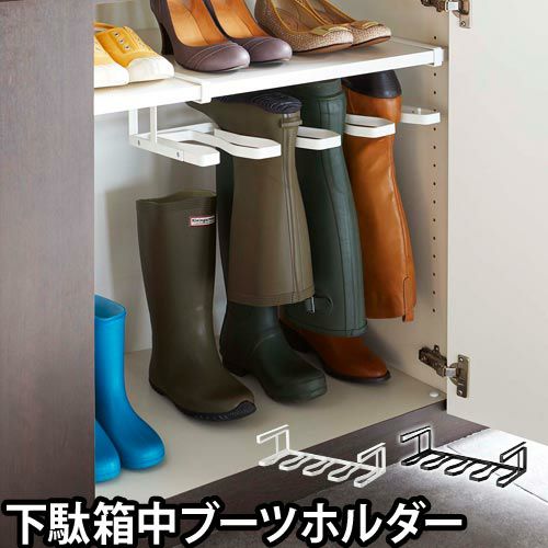 下駄箱の中の棚板を利用して、長靴やブーツを吊るして収納できる便利なアイテム。