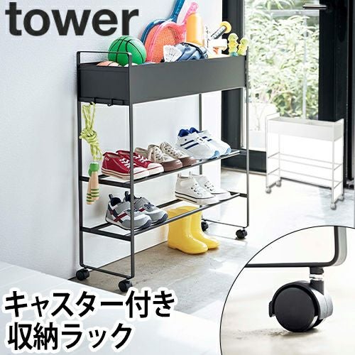 収納ラック キャスター付き 玄関収納ラック タワー tower 山崎実業 棚 靴 収納 シューズラック