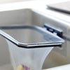 フィルムで光沢のある平面にペタっと貼るだけ!水切りネットホルダーをシンクの側面に浮かせて設置できます。