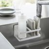 台所用洗剤ボトルとスポンジを浮かせて衛生的に収納できます。ぬめりにくく、お手入れも楽ちんに。底面は水はけの良いスリット状です。