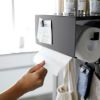 必要な時にサッと取り出したいキッチン周りの小物をまとめる「tower マグネットトレー付きキッチンペーパーホルダー」。マグネットで冷蔵庫にピタッとくっつきます。大判タイプの海外製キッチンペーパーロールも収まるホルダー、マグネットでメモが貼れるスチールカバー、調味料が置けるトレー、小物を引っ掛けておけるフックと思い思いの収納が叶います。