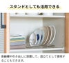 背もたれ上部の2点支持で、7枚の平皿を安定収納。片手でサッと置けてストレスフリーです。適度な間隔があり、通気性もバッチリ!