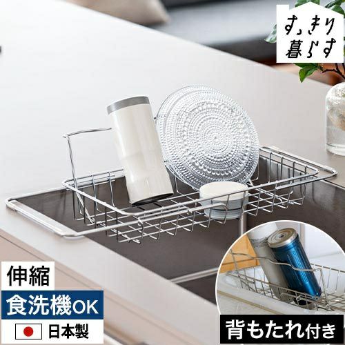 洗った後、乾かすのに困る水筒。「bws SELECTION すっきり暮らす 立て掛けられるシンク渡し水切り」は、そんな水筒を立てかけられる、波状ワイヤーの背もたれが付いた水切りラックです。浅型ながらも、フライパンや大皿も立てられる収納力。伸縮式なので、キッチンシンク内に収めることができて見た目もすっきり。丈夫な18-8ステンレス製で、お手入れ簡単な食洗機対応です。