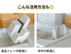 水筒に限らず、フライパンや大皿もしっかり立てられます。カップや茶わんもしっかり入るので収納力抜群。約3cmのマス目で、箸・スプーンなどのキッチンツールや小皿も落ちにくい!
