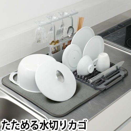洗ったお皿やグラス、カトラリーなどを乾かせて、使わない時はコンパクトに畳んで収納すれば、キッチンの作業台を広く使えます。 普段使いはもちろん、来客時など洗い物が多い場合に、メインの水切りカゴに追加して使っても便利です。