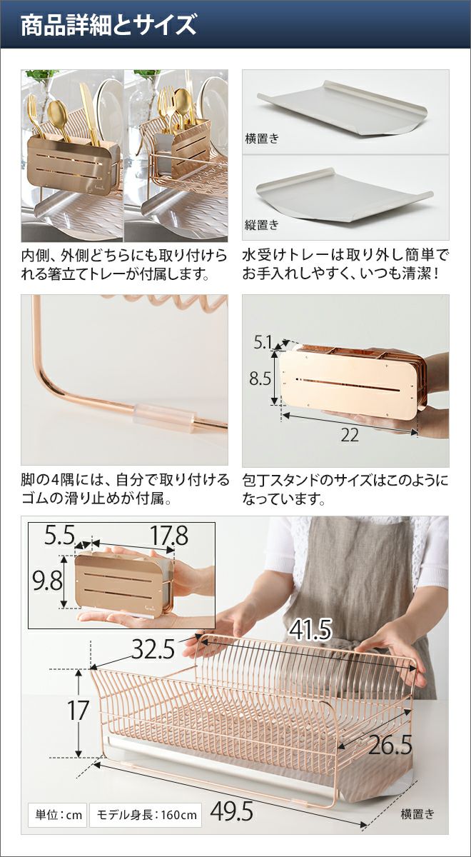 他の画像を見る 水切りラック/水切りかご/ディッシュドレイナー/箸立て/スリム/ステンレス/流れる/シンク上/オールステンレス/大容量/おしゃれ/燕三条/日本製/hanauta/ハナウタ/ディッシュドレイナー 水切りラック 【豪華特典付き】 水切りかご ディッシュドレイナー 箸立て スリム ステンレス 流れる シンク上 オールステンレス 大容量 おしゃれ 燕三条 日本製 [hanauta ハナウタ ディッシュドレイナー 縦置きロング 包丁スタンドセット ローズゴールド] 当店特別価格 ¥ 75,020 税込 詳細を見る お気に入りに登録する
