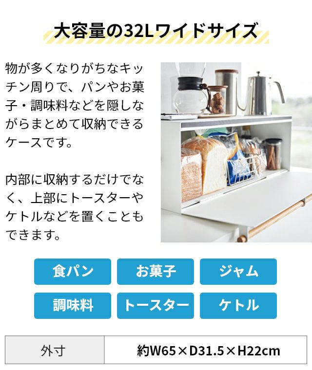 他の画像を見る パンや調味料・お菓子などをまとめて収納できる大容量32Lのブレッドケース。ワイドサイズでケースの上にトースターやトレー・マグなどの小物が一緒に置けます♪ 山崎実業 ブレッドケース ブレッドケース トスカ ワイド 3024 収納ケース パン入れ スパイスラック トースターラック 調味料ラック 1斤 2斤 木 大容量 インテリア シンプル おしゃれ 北欧 tosca キッチン収納 カウンター上収納 yamazaki 当店特別価格 ¥ 13,750 税込 在庫切れ 詳細を見る お気に入りに登録する