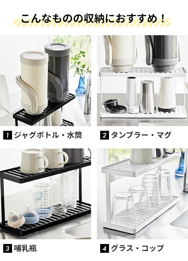 他の画像を見る 日常使いのグラスや、置き場所に困る2Lのジャグボトルを干せる2段の水切りラック。キッチンカウンター上やシンク周りに置けるスリム設計、通気性に優れるトレー付き。 山崎実業 ボトルスタンド トレー付きジャグボトル&グラススタンド タワー 2段 3714 3715 水切りラック グラススタンド 水筒立て 水切りトレー 水筒スタンド スタンド 水受け 2段 シンプル tower ボトル収納 キッチン収納 yamazaki タワーシリーズ 当店特別価格 ¥ 3,960 税込 在庫切れ 詳細を見る お気に入りに登録する