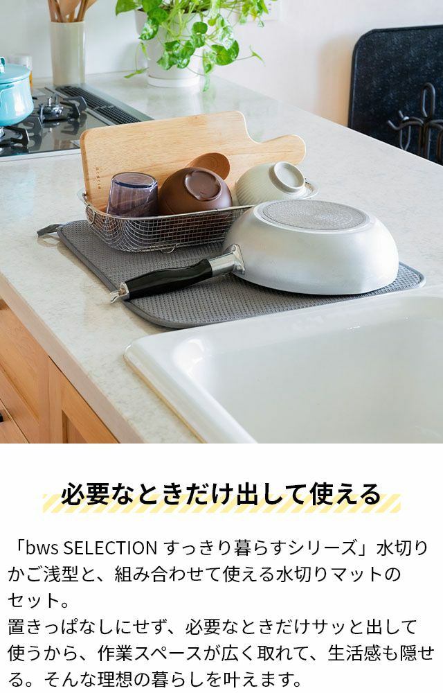 他の画像を見る 「bws SELECTION すっきり暮らすシリーズ」水切りかごと、合わせて使える専用水切りマットのセット。 必要なときだけサッと出して使うから、作業スペースが広く取れます。 ビーワースセレクション 【選べる豪華特典】 すっきり暮らす 水切りかご浅型 水切りマット ざる 食器乾燥マット 水切りラック 洗い物カゴ 吸水マット ステンレス キッチン 日本製 大判 燕三条 洗濯機で洗える おしゃれ 食洗機対応 bws SELECTION 当店特別価格 ¥ 5,390 税込 詳細を見る お気に入りに登録する