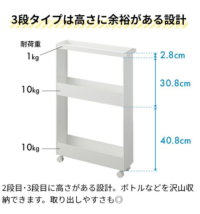 他の画像を見る 幅わずか13cm!隙間収納が叶うスリムなキッチンワゴン。細くても収納力は抜群!ペットボトルや一升瓶も省スペースに収まります。便利なキャスター付きです。 山崎実業 ワゴン キャスター付き キャスター付きスリムワゴン タワー 3段 4903208018043 1804 1805 キッチンワゴン 棚 隙間ラック スリムラック スリム おしゃれ tower キッチン収納 隙間収納 すきま収納 yamazaki タワーシリーズ 当店特別価格 ¥ 11,000 税込 詳細を見る お気に入りに登録する