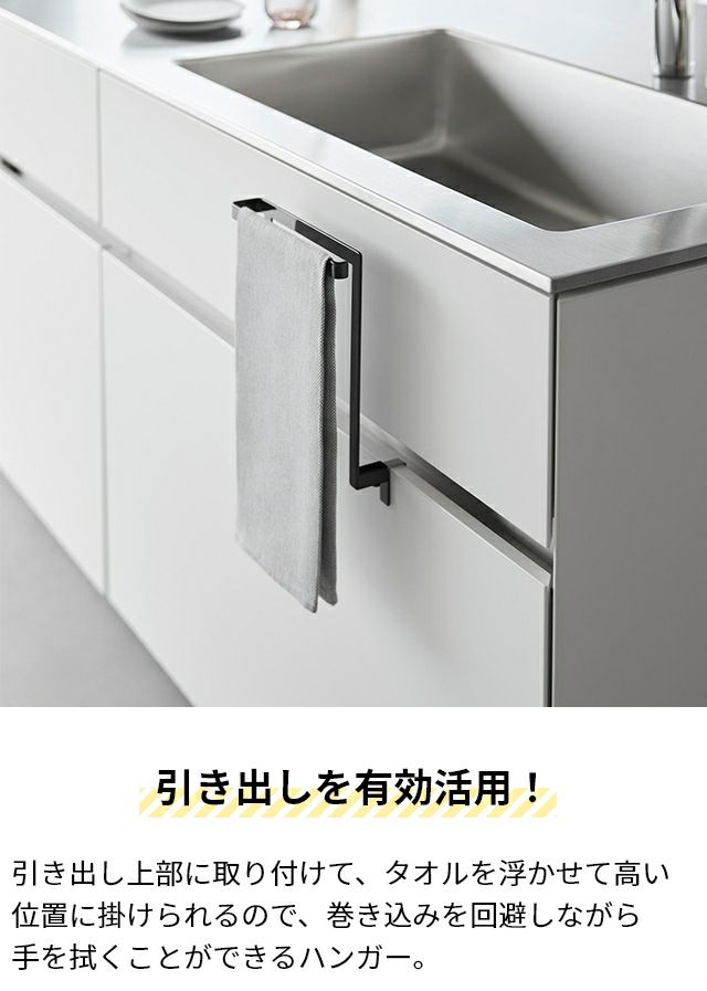 他の画像を見る 収納扉や引き出しの厚さに合わせて調整ネジで設置出来るタオルハンガー。高い位置に設置できるのでタオルを巻き込みません。便利なフックが付いており小物を掛けることも◎ 山崎実業 タオルハンガー キッチン キッチンシンク下収納扉タオルハンガー タワー 1985 1986 タオル掛け タオルかけ タオルバー タオルホルダー シンプル モノトーン tower キッチン収納 引っ掛け収納 吊り下げ収納 yamazaki タワーシリーズ 当店特別価格 ¥ 2,530 税込 詳細を見る お気に入りに登録する