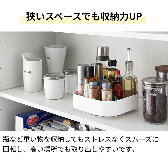 他の画像を見る 360度回転式のターンテーブル。散らかりがちな調味料や化粧品の収納に大活躍!シンプルなデザインだからインテリアに馴染む◎ 山崎実業 調味料ラック 回転式収納ラック タワー スクエア 2198 2199 スパイスラック 調味料入れ トレイ 小物入れ コスメ収納 回転式 省スペース シンプル モノトーン tower 調味料収納 キッチン収納 見せる収納 yamazaki タワーシリーズ 当店特別価格 ¥ 1,980 税込 詳細を見る お気に入りに登録する