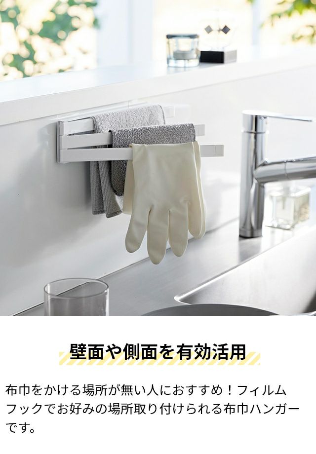 他の画像を見る フィルムフックでお好きな位置に簡単に取り付けできる布巾ハンガー。合計3枚の布巾を掛けることができ、可動式のバーで風通し良く清潔に干せます。 山崎実業 ふきん掛け フィルムフック布巾ハンガー タワー 2165 2166 タオル掛け タオル干し タオルハンガー タオルバー 省スペース 賃貸 おしゃれ 北欧 シンプル モノトーン 壁面 tower キッチン収納 壁面収納 yamazaki タワーシリーズ 当店特別価格 ¥ 1,870 税込 詳細を見る お気に入りに登録する