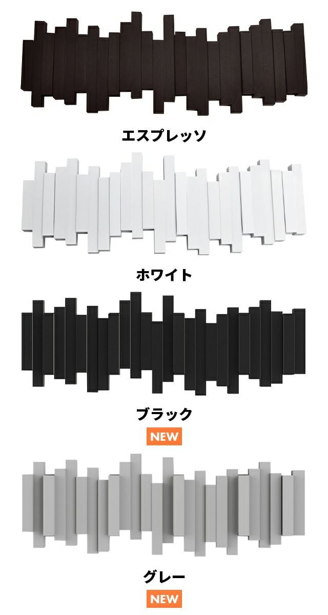 他の画像を見る お好きな高さに壁面設置できるコートハンガー。1フックにつき耐荷重約2kgのしっかりとした作り。フックは折りたたみ式なので、使わないときはすっきりとした佇まいです。 アンブラ 壁掛けフック フリップフック 8連フック コートハンバー ハンバーフック コート掛け 小物掛け 折りたたみフック ウォールフック 洋服掛け ハンバーラック モダン ウォールハンバー 石膏ボード 木製 省スペース umbra FLIP 8 HOOK LONG 当店特別価格 ¥ 6,600 税込 詳細を見る お気に入りに登録する