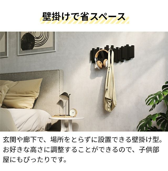 他の画像を見る お好きな高さに壁面設置できるコートハンガー。1フックにつき耐荷重2.3kgのしっかりとした作り。フックは折りたたみ式で、使わないときはオブジェのような佇まいです。 アンブラ 壁掛けフック スティックス マルチフック コートハンガー ハンガーフック コート掛け 折りたたみフック ウォールフック ハンガーラック 洋服掛け おしゃれ 壁付け 省スペース 石膏ボード 折り畳み式 玄関 umbra sticks multi hook 当店特別価格 ¥ 4,500 税込 詳細を見る お気に入りに登録する