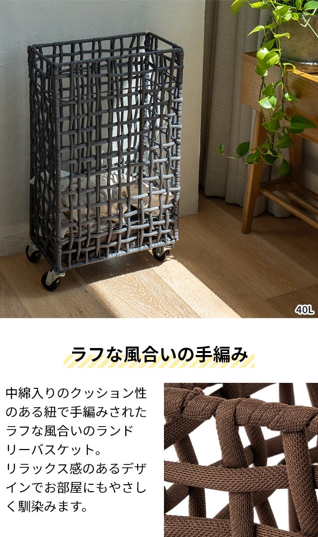 他の画像を見る 中綿入りのクッション性のある紐による手編みが魅力の、キャスター付きランドリーバスケット。軽やかな見た目ながら、スチール製の枠組みを採用した頑丈な作り。 ブリッド フォールディング ラフニット ランドリーバスケット キャスター付き おもちゃ入れ 洗濯かご 洗濯物入れ 折りたたみ スリム 大容量 20cm お洒落 BRID FOLDING ROUGH KNIT LAUNDRY BASKET with CASTER 40L/SLIM かご収納 ランドリー収納 当店特別価格 ¥ 6,930 税込 在庫切れ 詳細を見る お気に入りに登録する