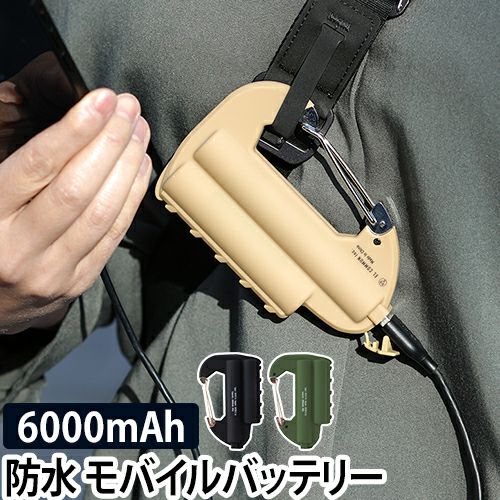 モバイルバッテリー カラビナバッテリー ダブル 防水 充電器 軽量 6000mAh アウトドア