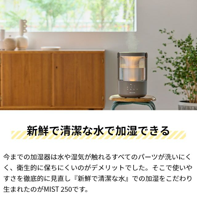 他の画像を見る 乾燥する季節に快適湿度をキープする超音波式プールレス加湿器。毎日「新鮮で綺麗な水」で加湿できるように、洗いやすさ、使いやすさを一から見直しました。 リズム 【選べる豪華特典】 プールレス加湿器 ミスト250 9YYA64RH 超音波加湿器 超音波式 お手入れ簡単 卓上加湿器 小型 小型 大容量 ミスト アロマ おしゃれ リビング 床置き 6畳以上対応 かわいい 寝室 静音 湿度調整 RHYTHM MIST250 当店特別価格 ¥ 15,800 税込 詳細を見る お気に入りに登録する