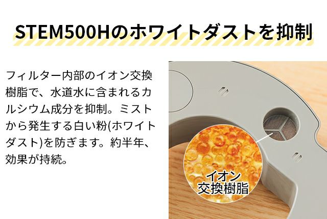 他の画像を見る フィルター内部のイオン交換樹脂で、水道水に含まれるカルシウム成分を抑制。ミストから発生する白い粉(ホワイトダスト)を防ぎます。約半年、効果が持続。 カドー CT-C500 加湿器 STEM(ステム) 500H HM-C500H 交換用カートリッジ フィルター ホワイトダスト 交換 cado 当店特別価格 ¥ 4,980 税込 詳細を見る お気に入りに登録する