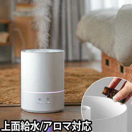 フィルターなどの付属品なしで、アロマオイルやアロマウォーターを水タンクにそのまま垂らして使えるので簡単!ミストと一緒に香りを広げてくれます。