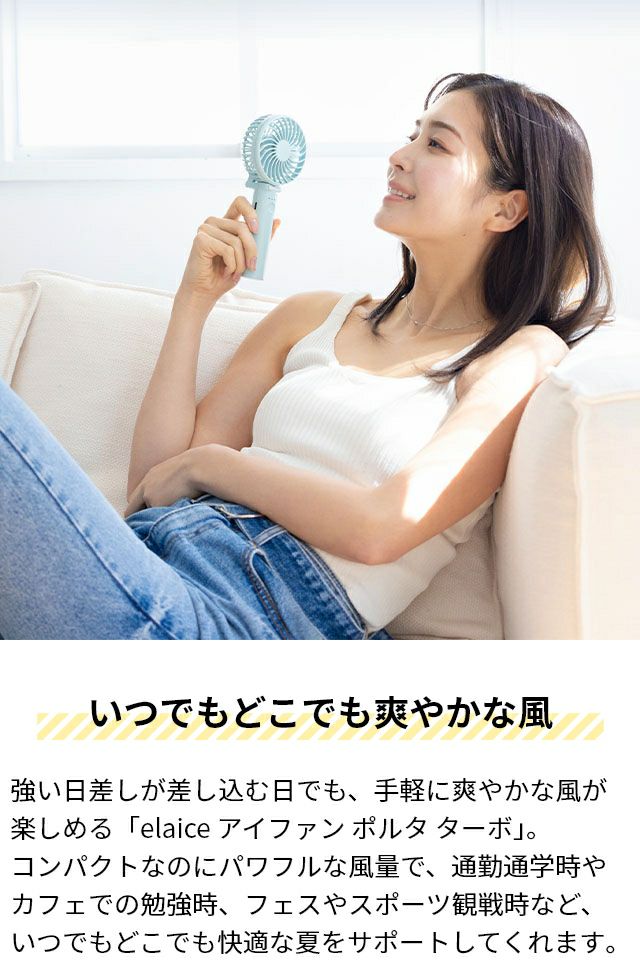 他の画像を見る 強い日差しの日でも、爽やかな風が楽しめる「elaice アイファン ポルタ ターボ」。 コンパクトなのにパワフルな風量で、通勤通学時やフェス時など、いつでもどこでも快適。 エレス ハンディファン 首掛け アイファン ポルタ ターボ IF-PTRB25 ハンディ扇風機 ハンディーファン 携帯扇風機 手持ち扇風機 強力 大風量 強風 USB 充電式 角度調整 持ち運び 手持ち 卓上 折りたたみ 可愛い elaice iFan Porta Turbo 25 当店特別価格 ¥ 2,728 税込 詳細を見る お気に入りに登録する
